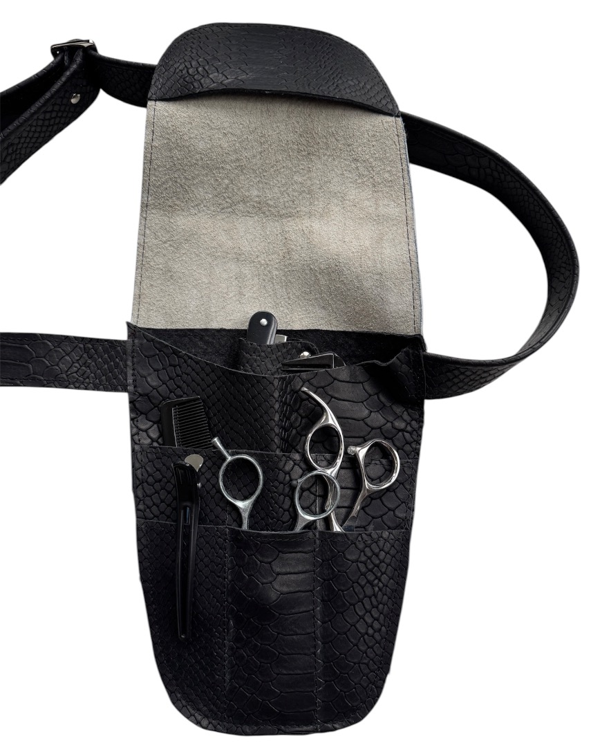 Helemaal nieuw in het assortiment is Scharenholster Alice. Wat een beauty. Door de waanzinnige voorflap valt er nooit meer een schaar uit je tas. Ook ideaal voor thuiskappers.